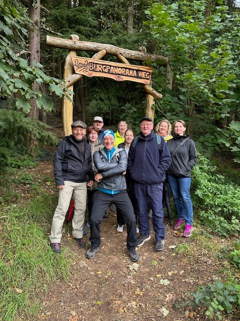 Leichter Regen beim Treffpunkt am Markt Bildstock. 10 Teilnehmer machten sich auf den Weg nach Kirkel, um den Burgpanoramaweg zu erkunden. Zum Start der Wanderung hörte der Regen auf und bei schönem Herbstwetter wurde die Wanderung angegangen. Der Tag fand seinen Ausklang bei einem gemeinsamen Mittagessen in der Scheune Limbach.